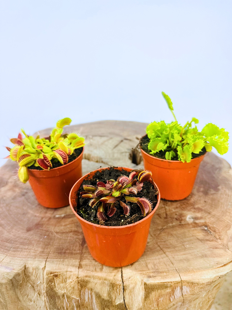 There is no more classic carnivorous plant than the Venus Flytrap, also known as the Dionea Muscipula. The Venus Flytrap has several varieties. With this mix, you get 3 of them right away. How nice is that? Pot size 8.5 cm.